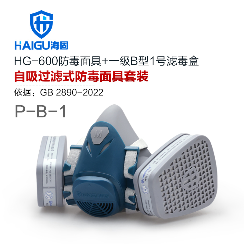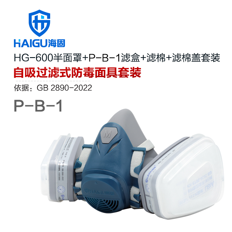 海固600半面罩+P-B-1濾毒盒 綜合防護(hù)無機(jī)氣