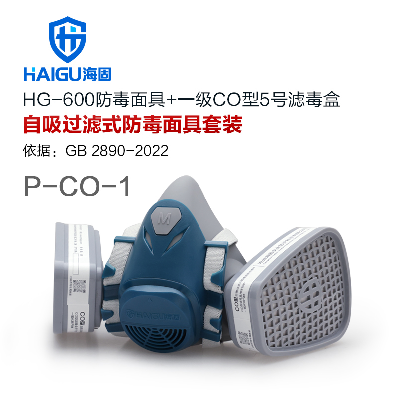 海固600半面罩+P-CO-1濾毒盒 防護(hù)一氧化碳?xì)?/dd>