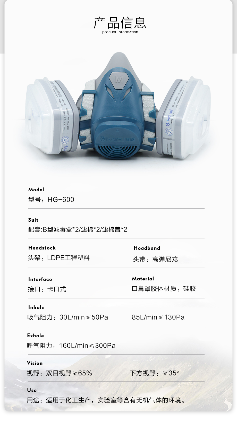防塵毒套裝 海固600半面罩+P-B-1無機(jī)氣體濾毒盒+濾棉+濾棉蓋