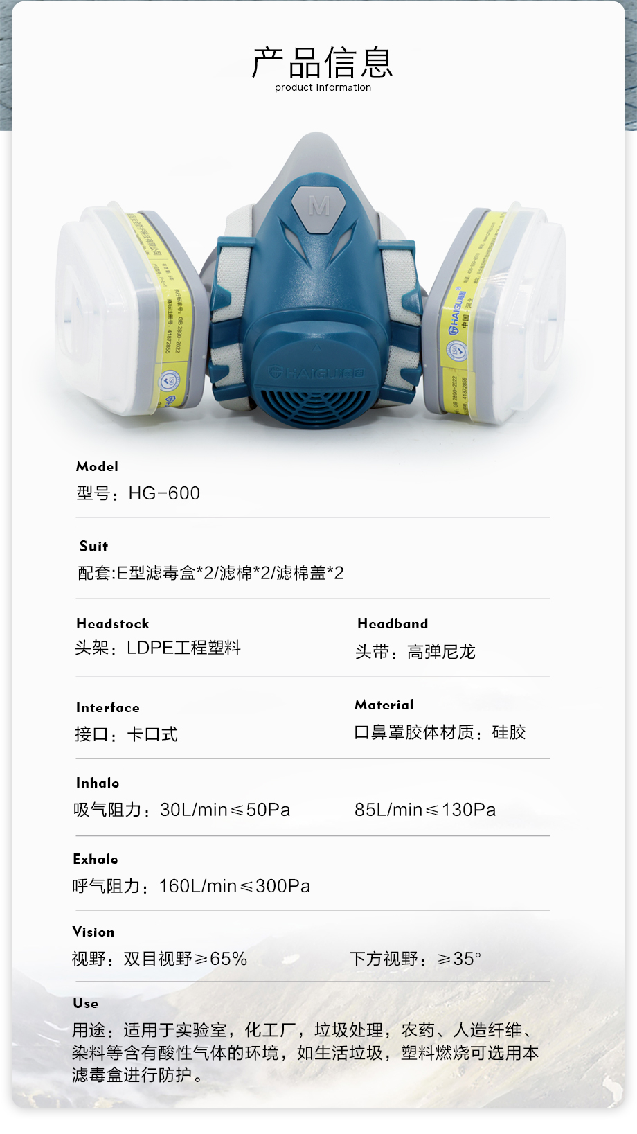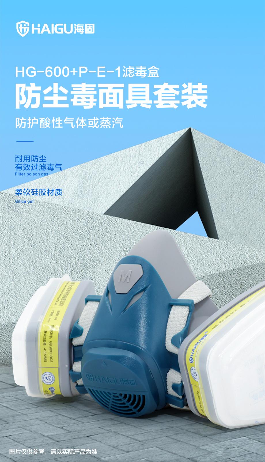 防塵毒套裝 海固600半面罩+P-E-1酸性氣體濾毒盒+濾棉+濾棉蓋