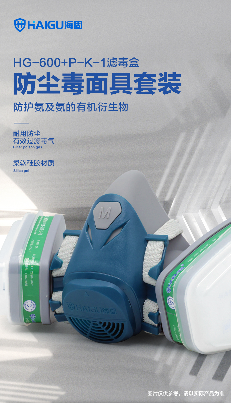 防塵毒套裝 海固600半面罩+P-K-1氨氣濾毒盒+濾棉+濾棉蓋