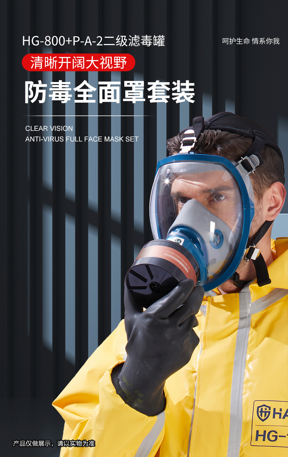 海固800全面罩+HG-ABS/P-A-2濾毒罐 綜合有機氣體防護套裝