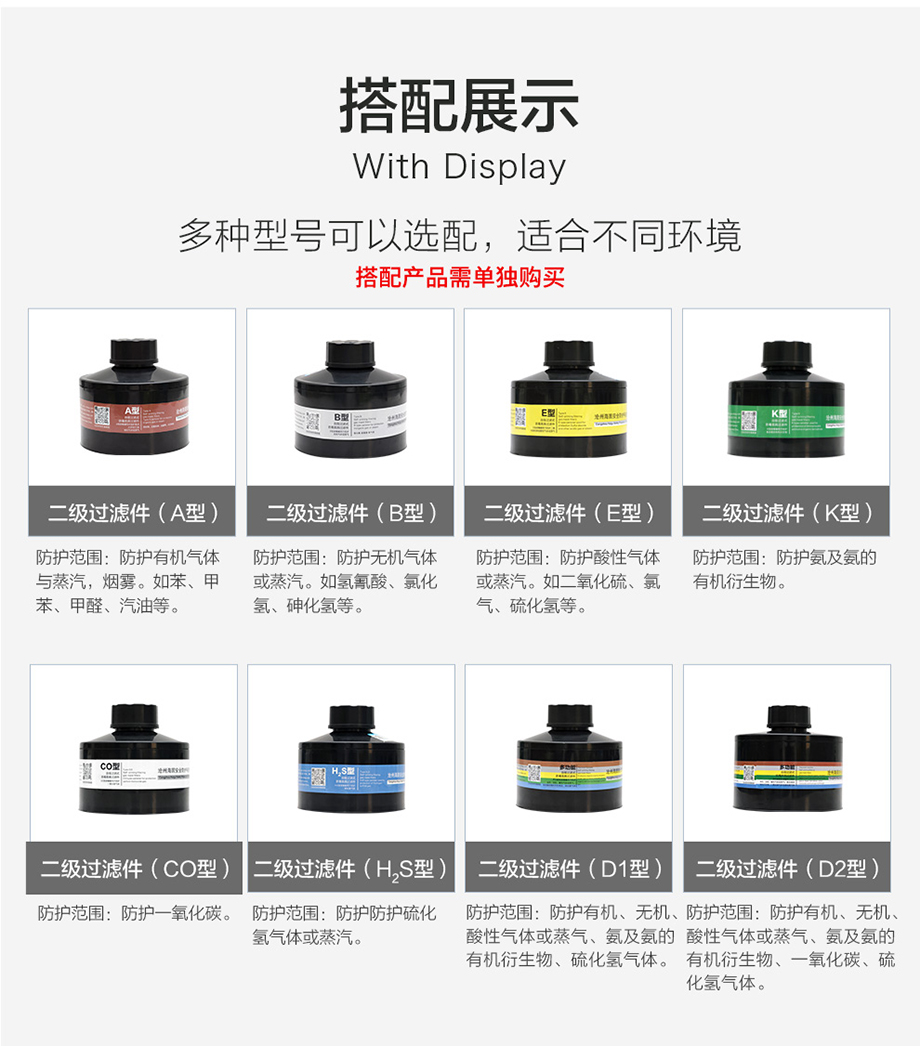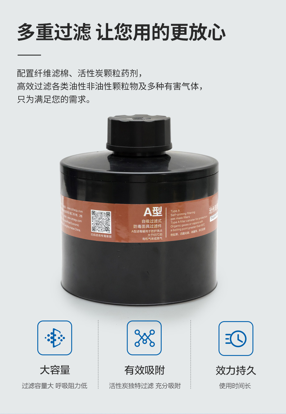 產品規(guī)格:寶藍灰硅膠/ABS濾毒罐