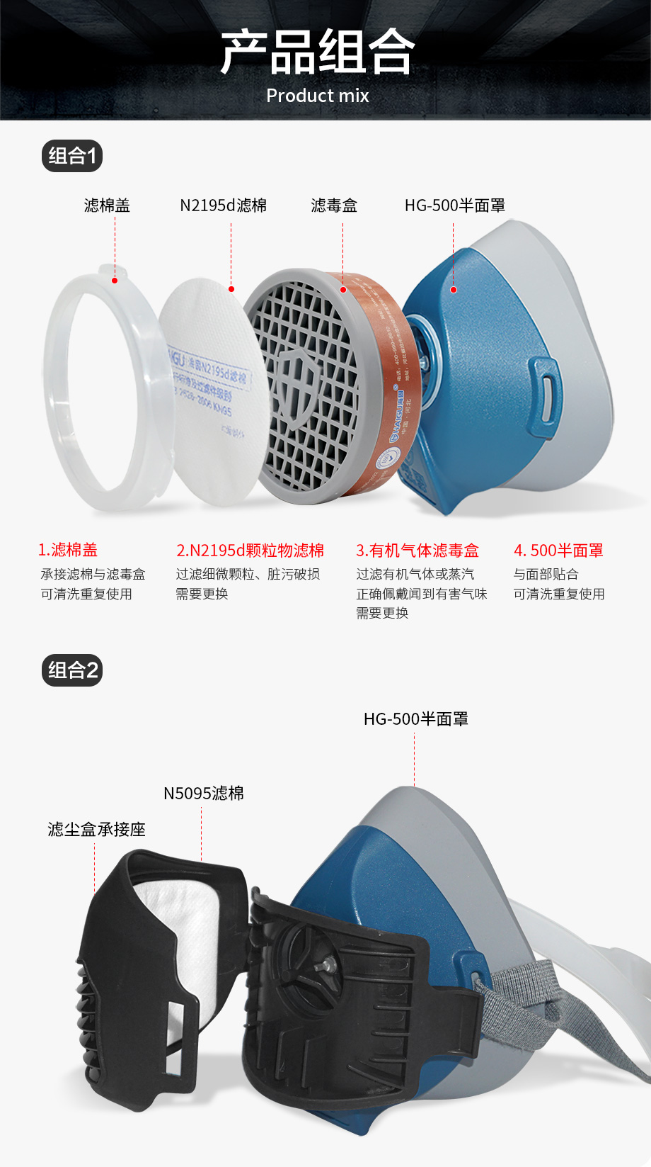 500半面罩防毒面具套裝
