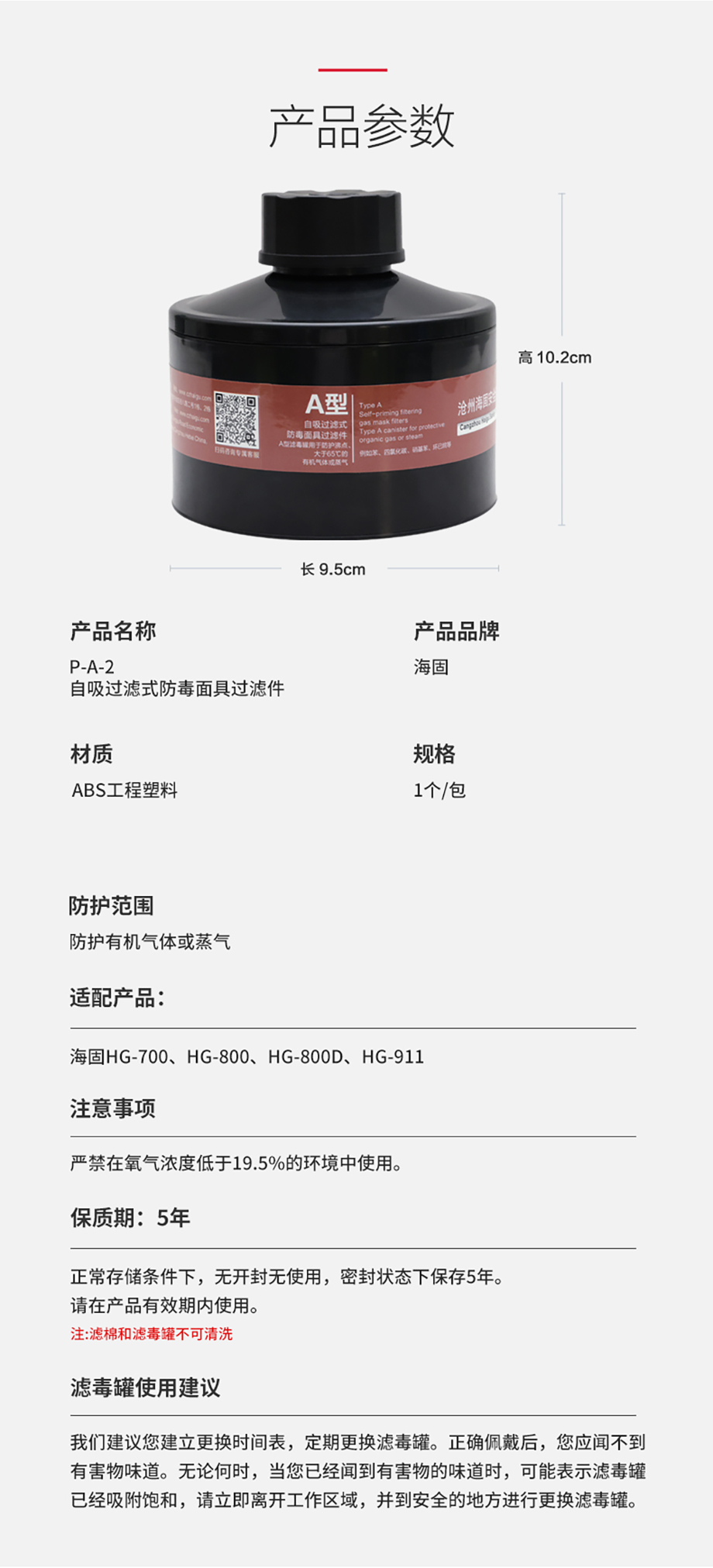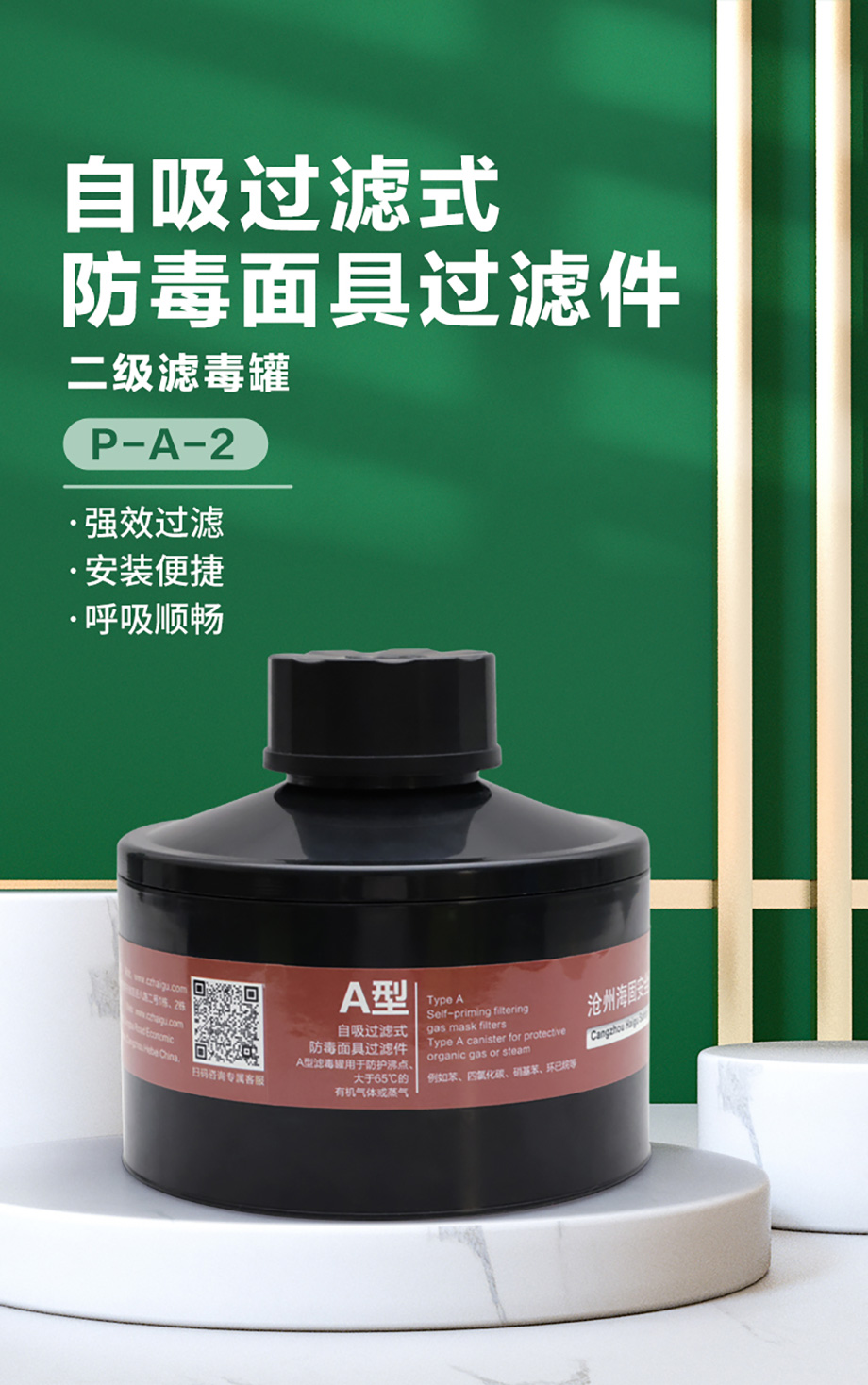 海固P-A-2濾毒罐 苯、四氯化碳、硝基苯、環(huán)己烷等有機氣體防護