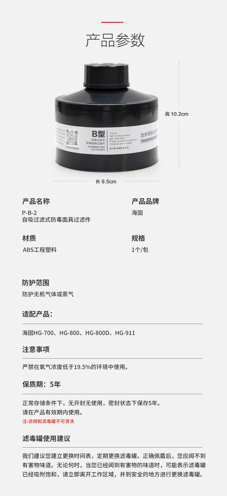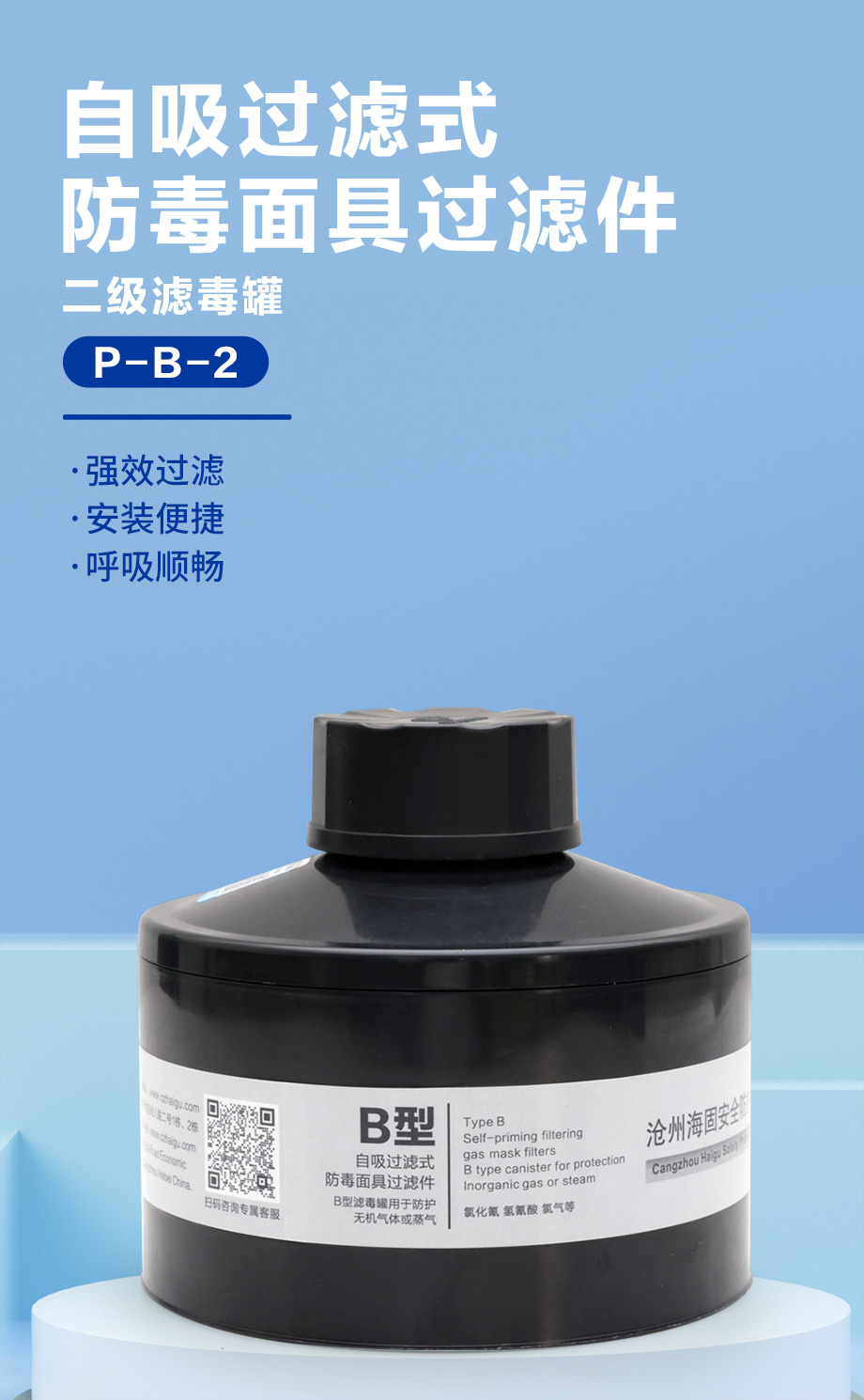 海固P-B-2濾毒罐 無(wú)機(jī)氣體 氯化氫、氫氰酸、氯氣 綜合防護(hù)