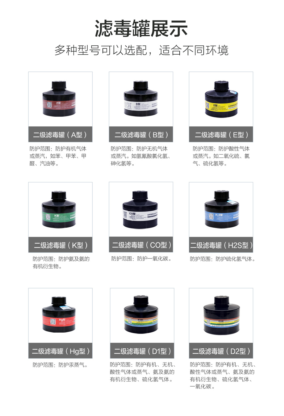 防護(hù)范圍:主要防護(hù)無(wú)機(jī)氣體或蒸汽