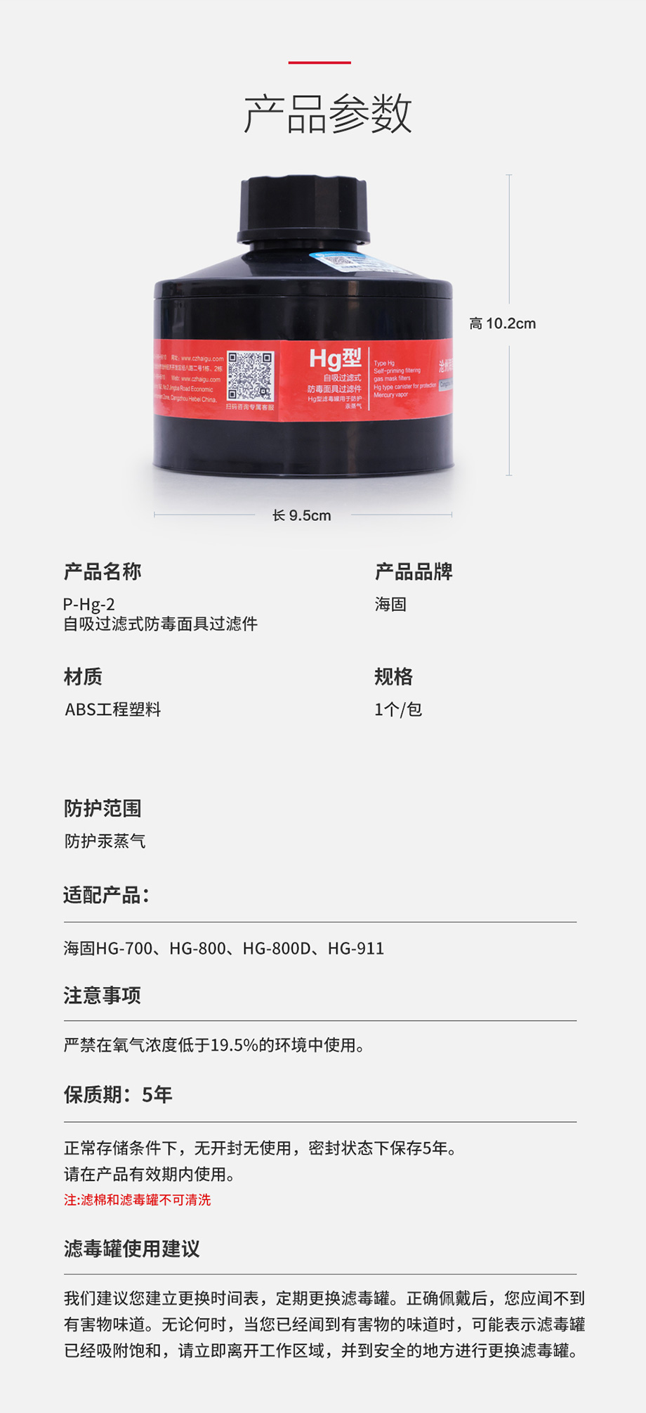 海固P-Hg-2濾毒罐 汞蒸汽、水銀防護 6號濾毒罐
