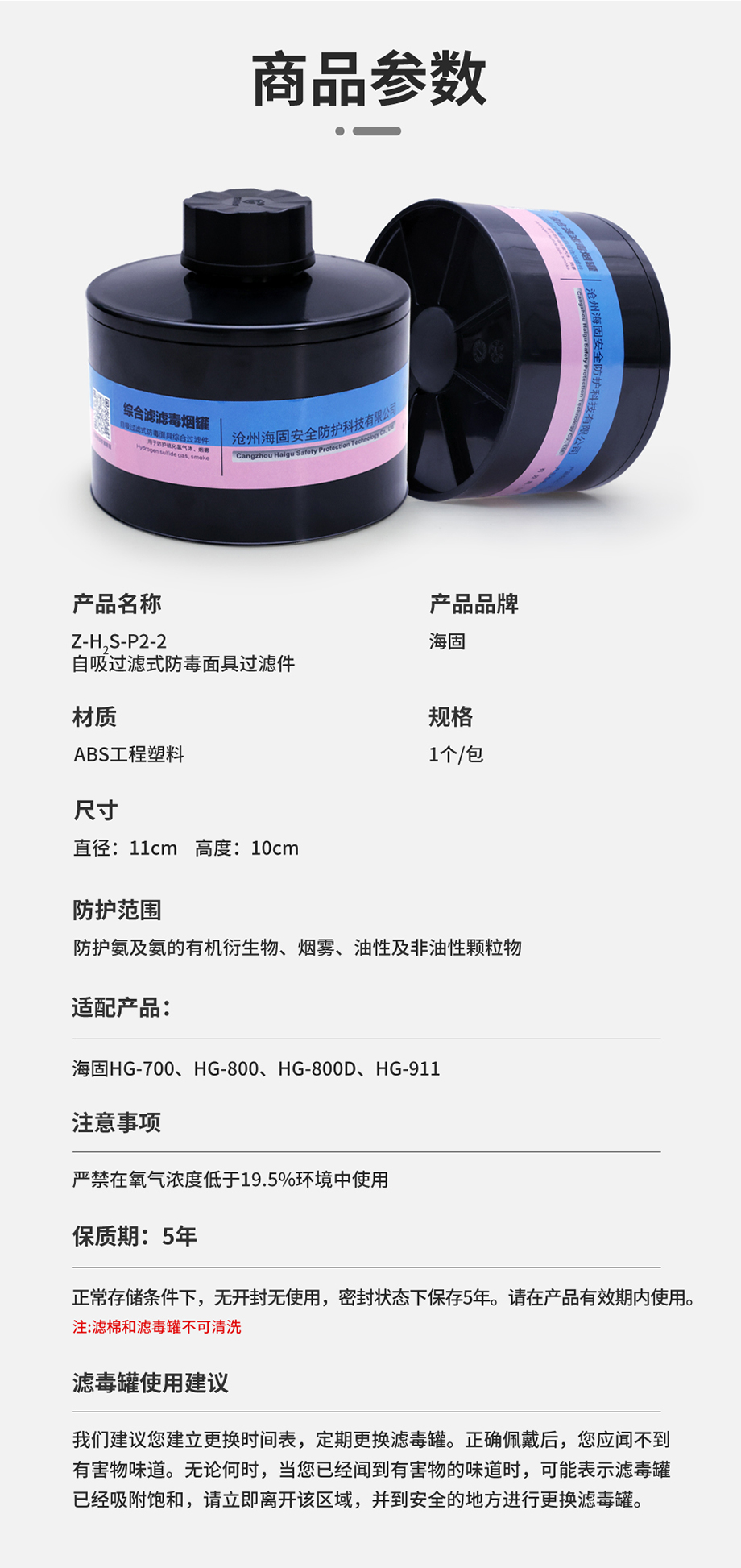 海固Z-H2S-P2-2/P3-2綜合濾毒濾煙罐 硫化氫及煙霧防護(hù)