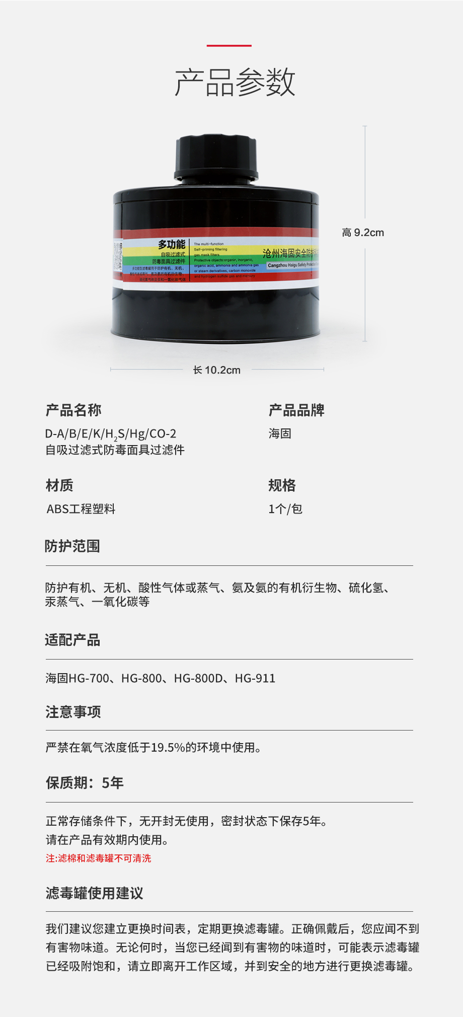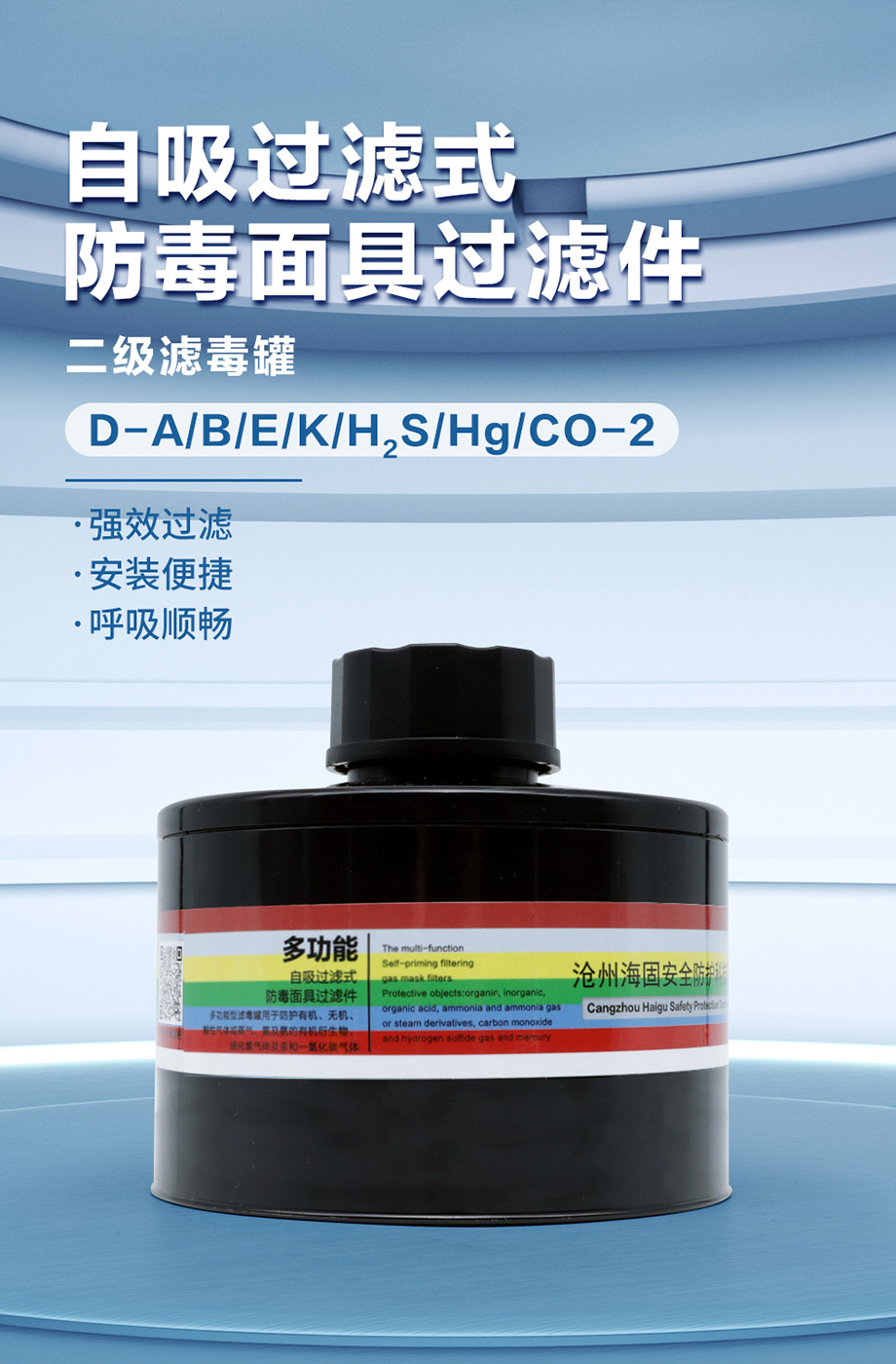 海固 D-A/B/E/K/H2S/Hg/CO-2 多氣體防護濾毒罐