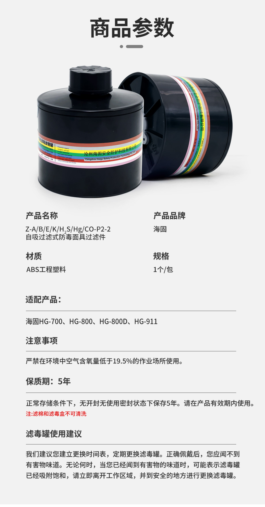 海固Z-A/B/E/K/H2S/Hg/CO-P2-2/P3-2綜合濾毒濾煙罐