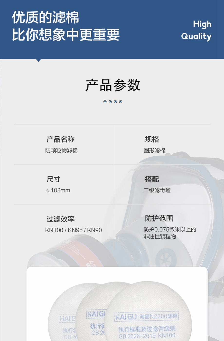 海固2系2級(jí)KN圓形濾棉 KN100/KN95/KN90非油性顆粒物濾棉