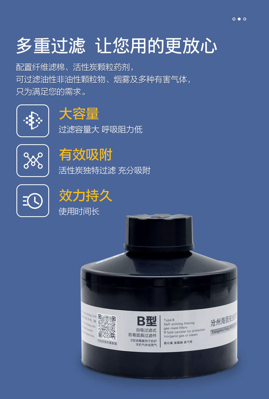海固700全面罩+HG-ABS/P-B-2濾毒罐 防毒面具 無機(jī)氣體綜合防護(hù)