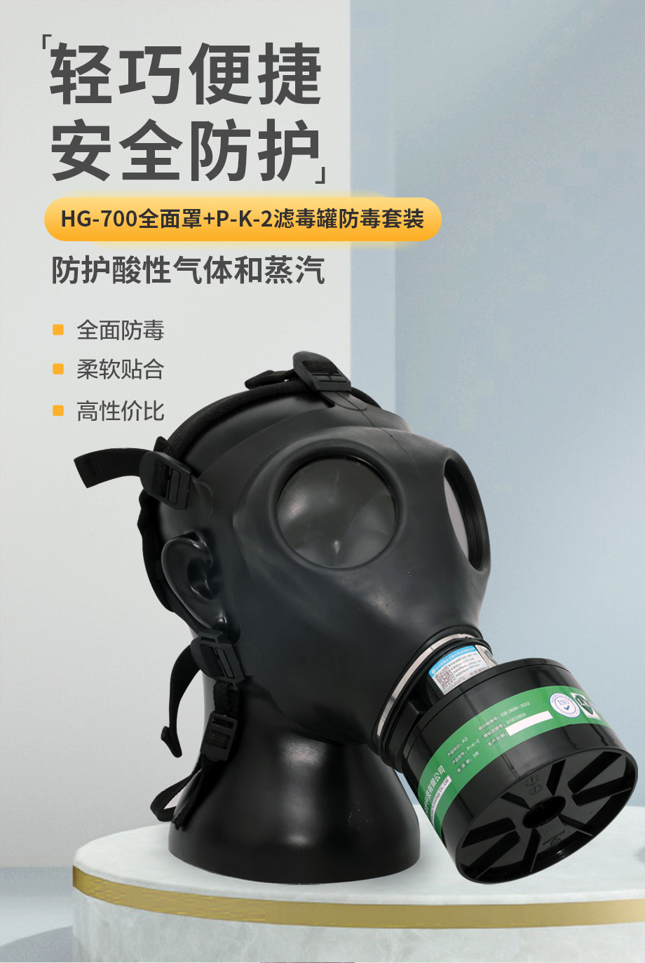 海固700全面罩+HG-ABS/P-K-2濾毒罐 氨氣全面罩防毒面具
