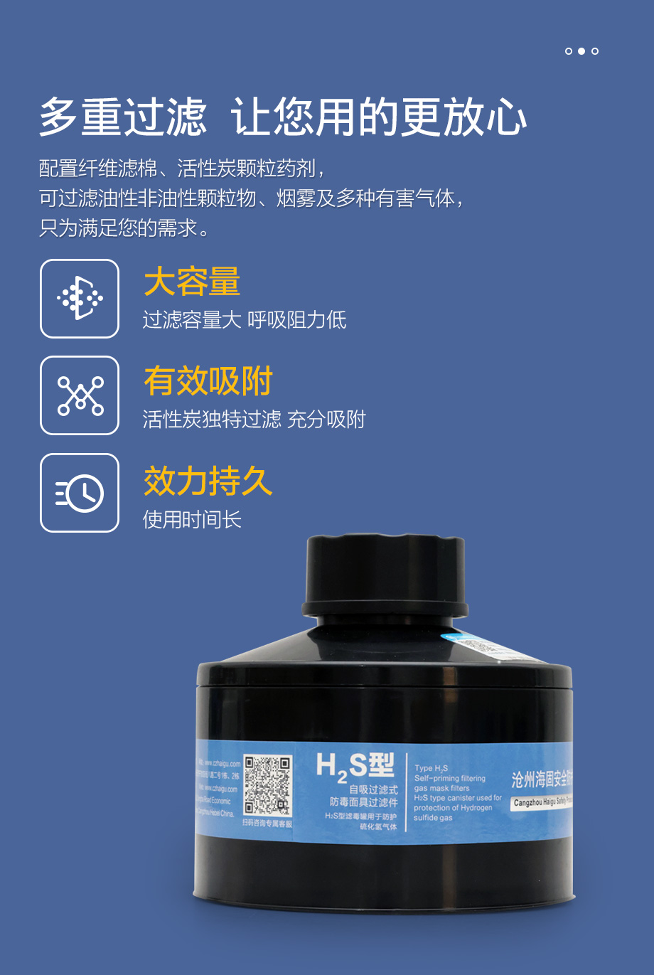 海固700全面罩+HG-ABS/P-H2S-2濾毒罐 硫化氫活性炭防毒面具