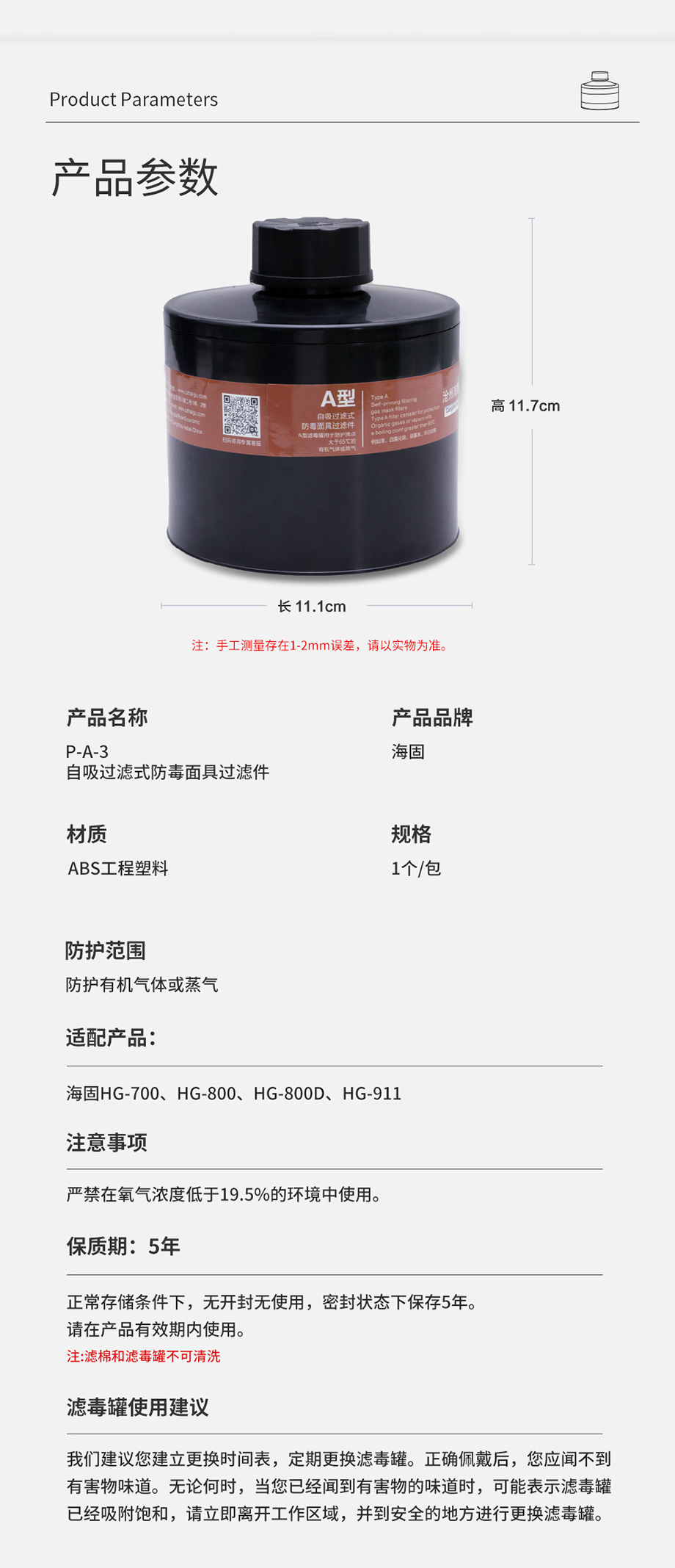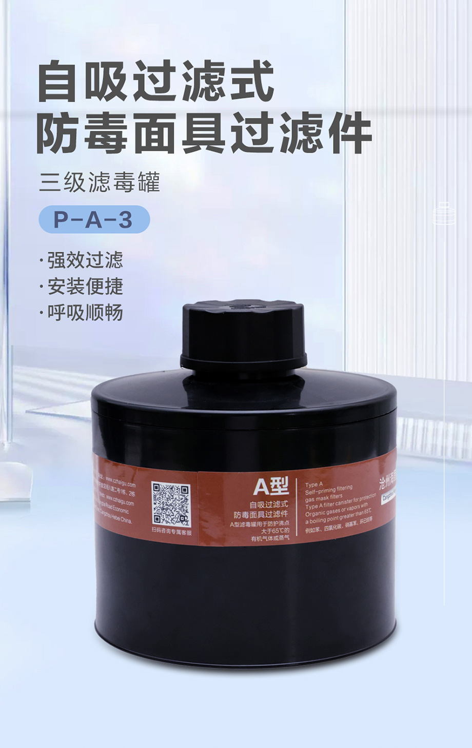 海固P-A-3濾毒罐 有機氣體苯、四氯化碳、硝基苯、環(huán)己烷等三級濾毒罐