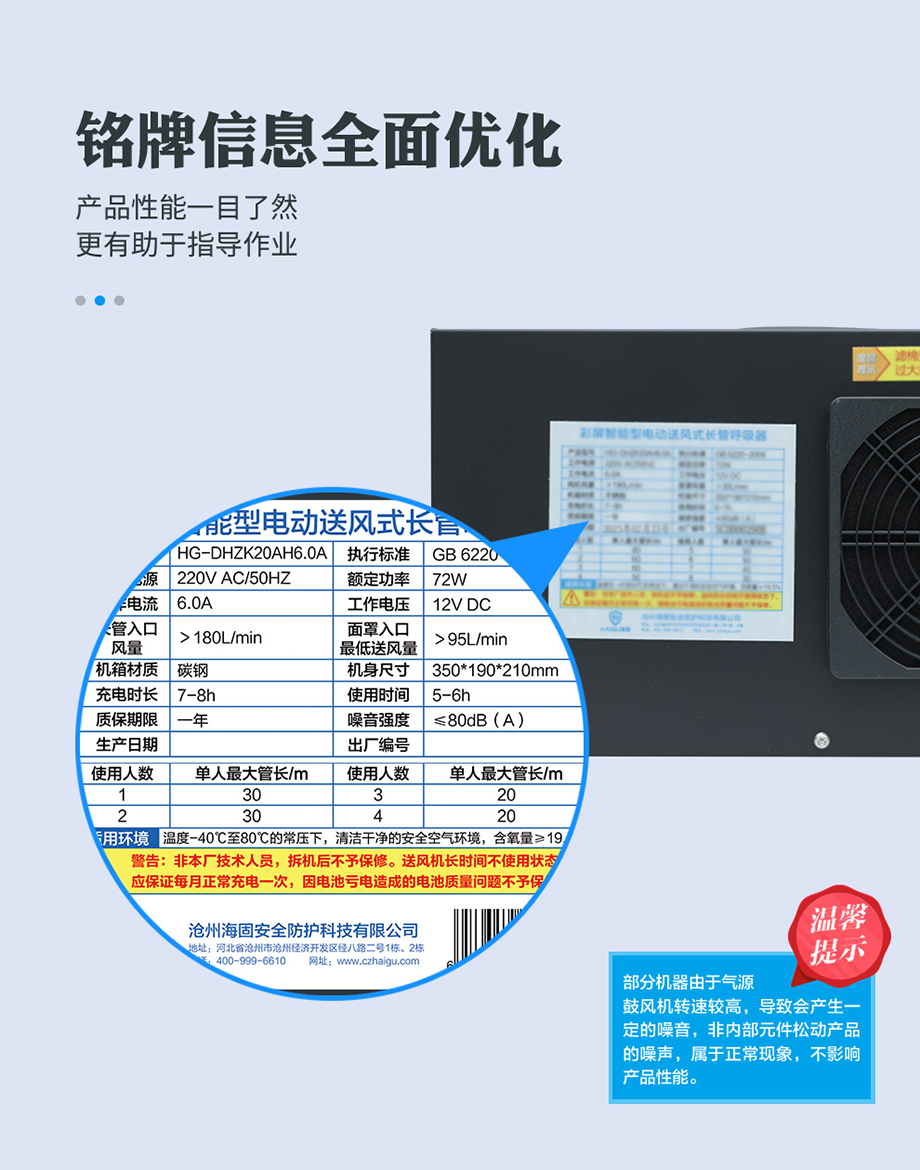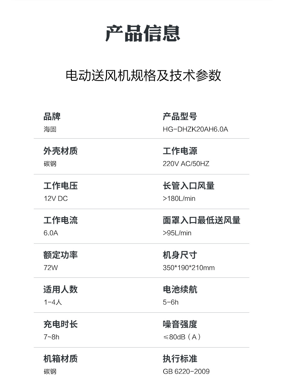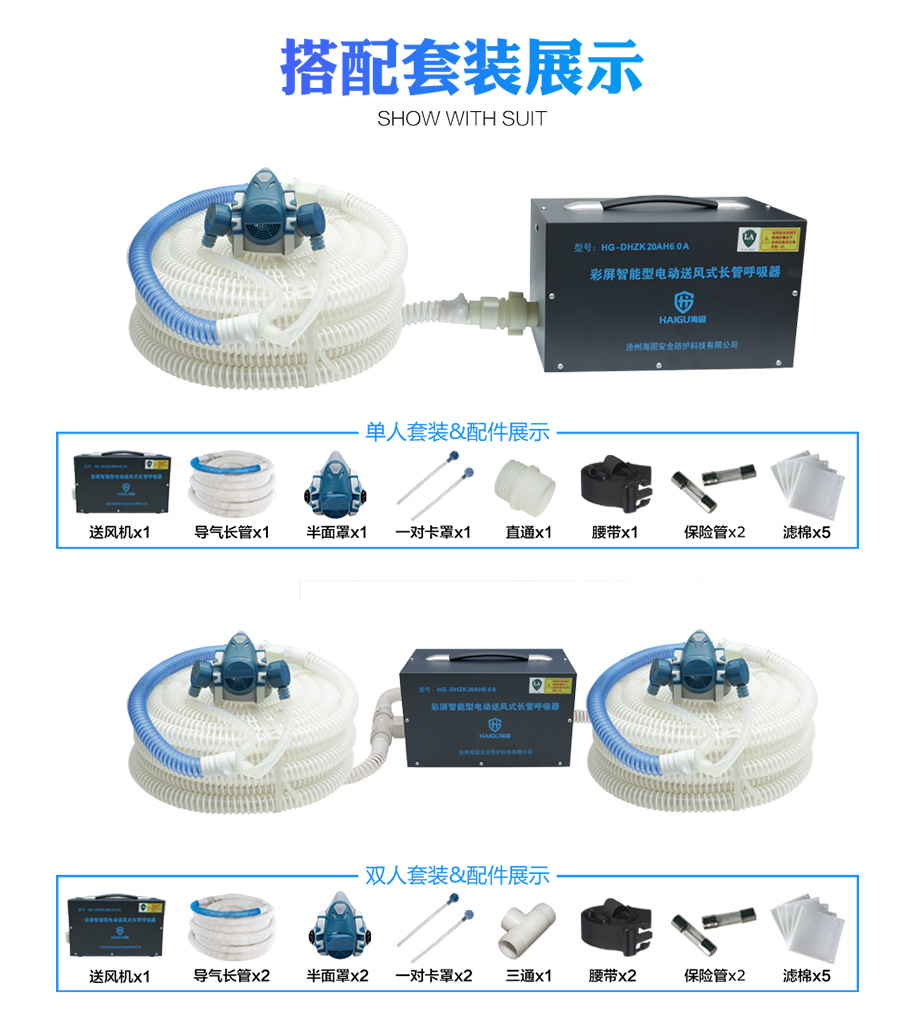 海固HG-DHZK20AH6.0A智能型彩屏 半面罩 雙人電動送風(fēng)式長管呼吸器