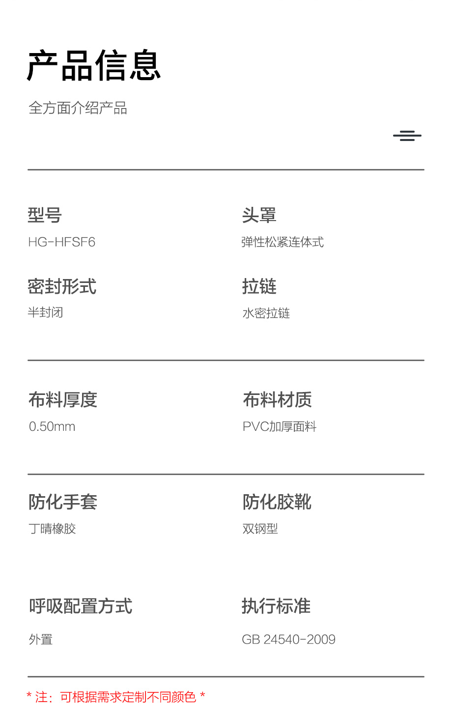 海固HG-HFSF6防護服 六氟化硫防護 半封閉輕型外置防化服
