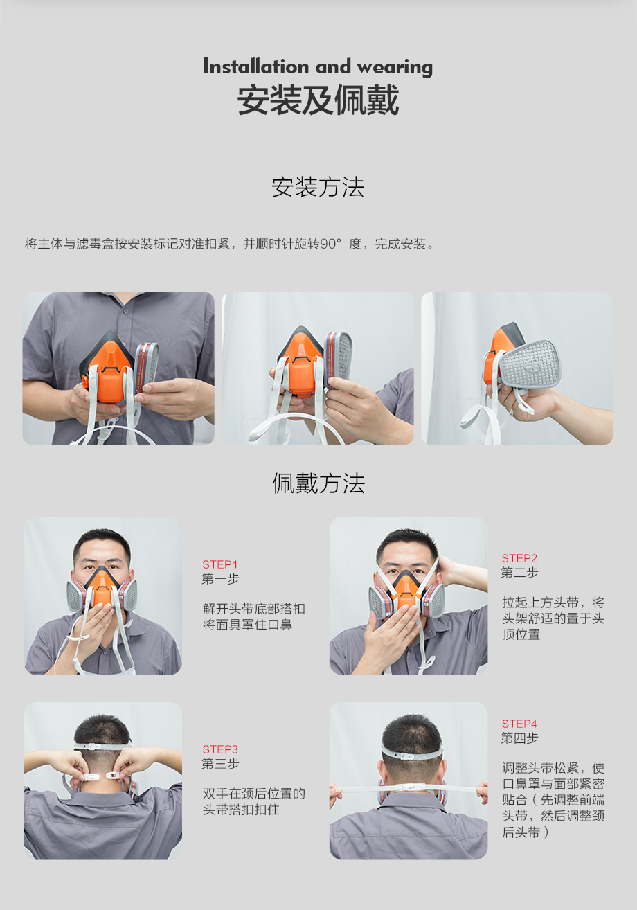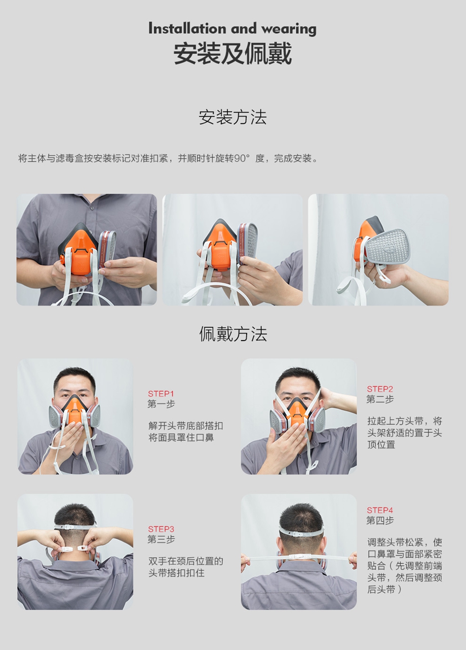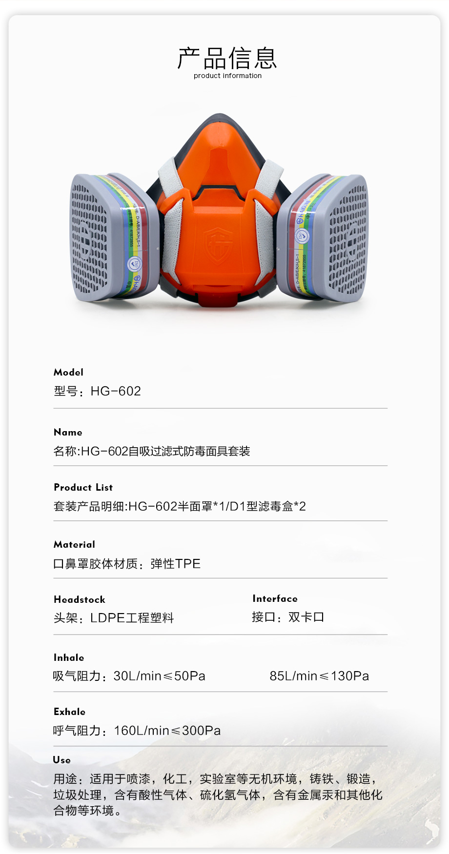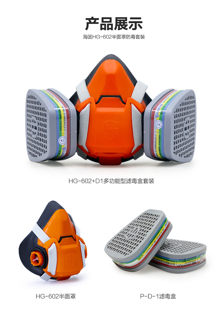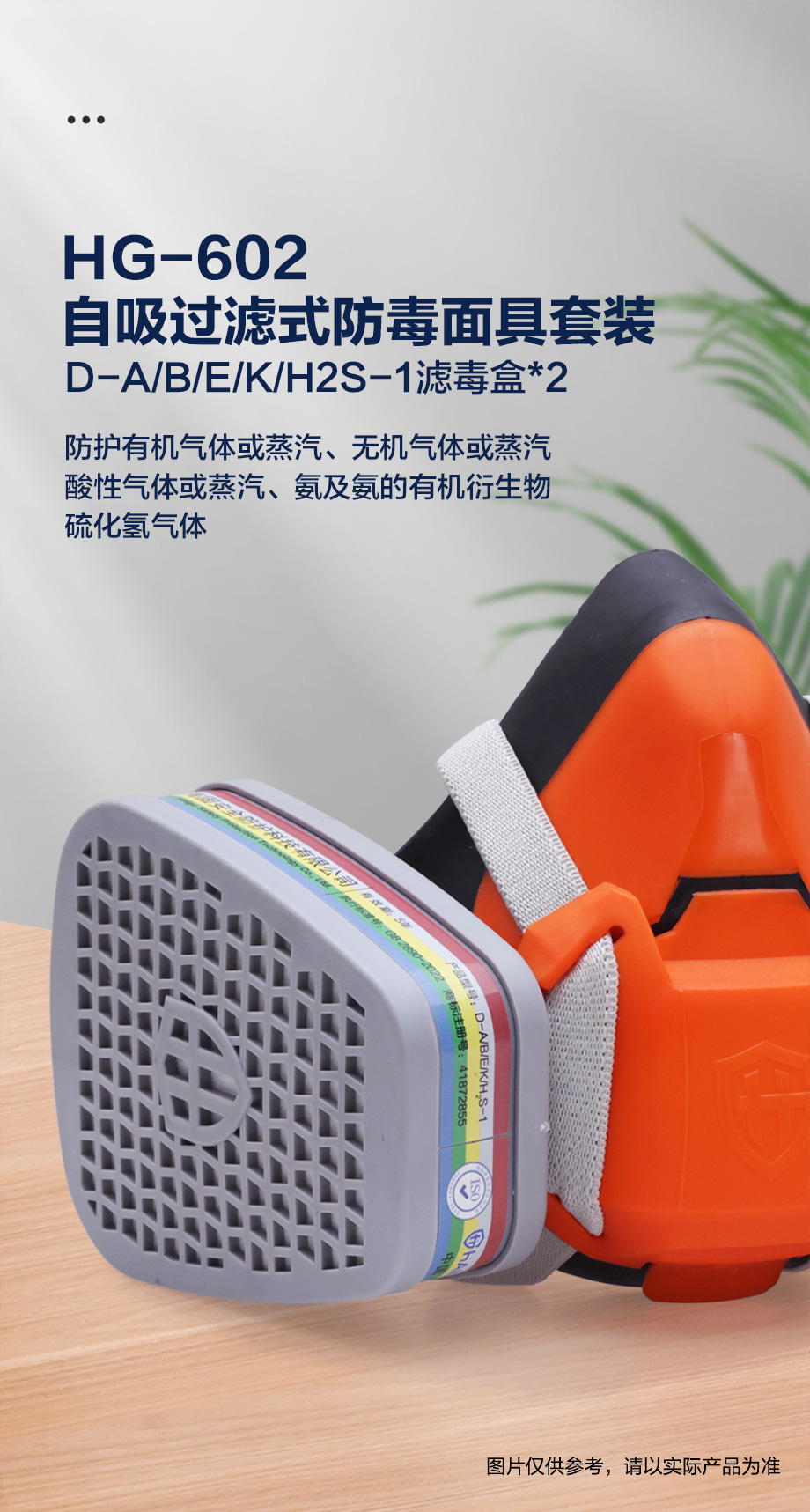 海固602半面罩+D-A/B/E/K/H2S-1濾毒盒 多氣體防護套裝