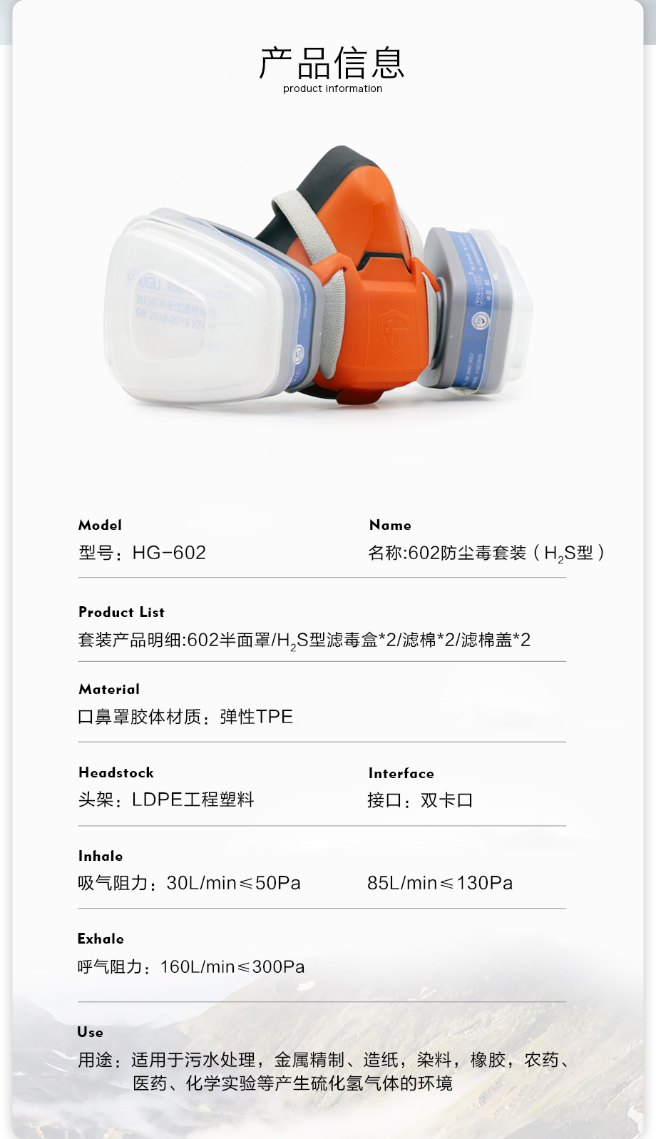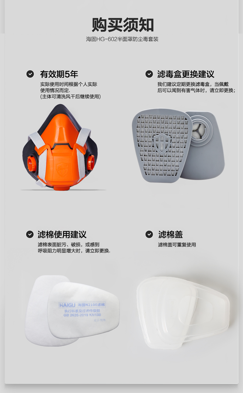 海固HG-602半面罩+P-H2S-1濾毒盒+濾棉+T形濾棉蓋 防塵毒套裝