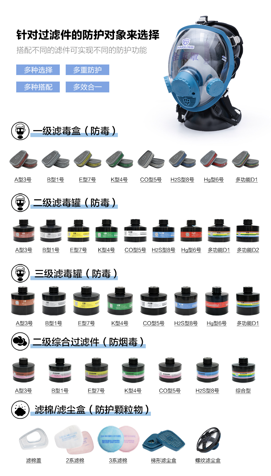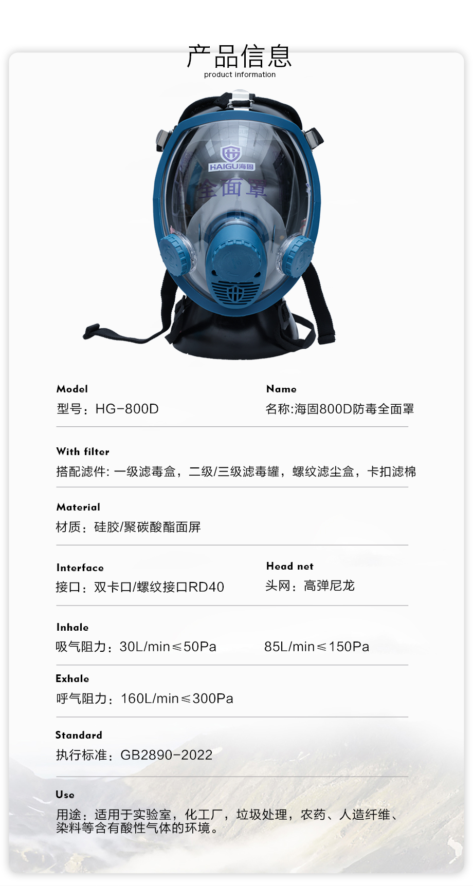 海固800D全面罩+HG-ABS/P-E-3濾毒罐 酸性氣體防護套裝