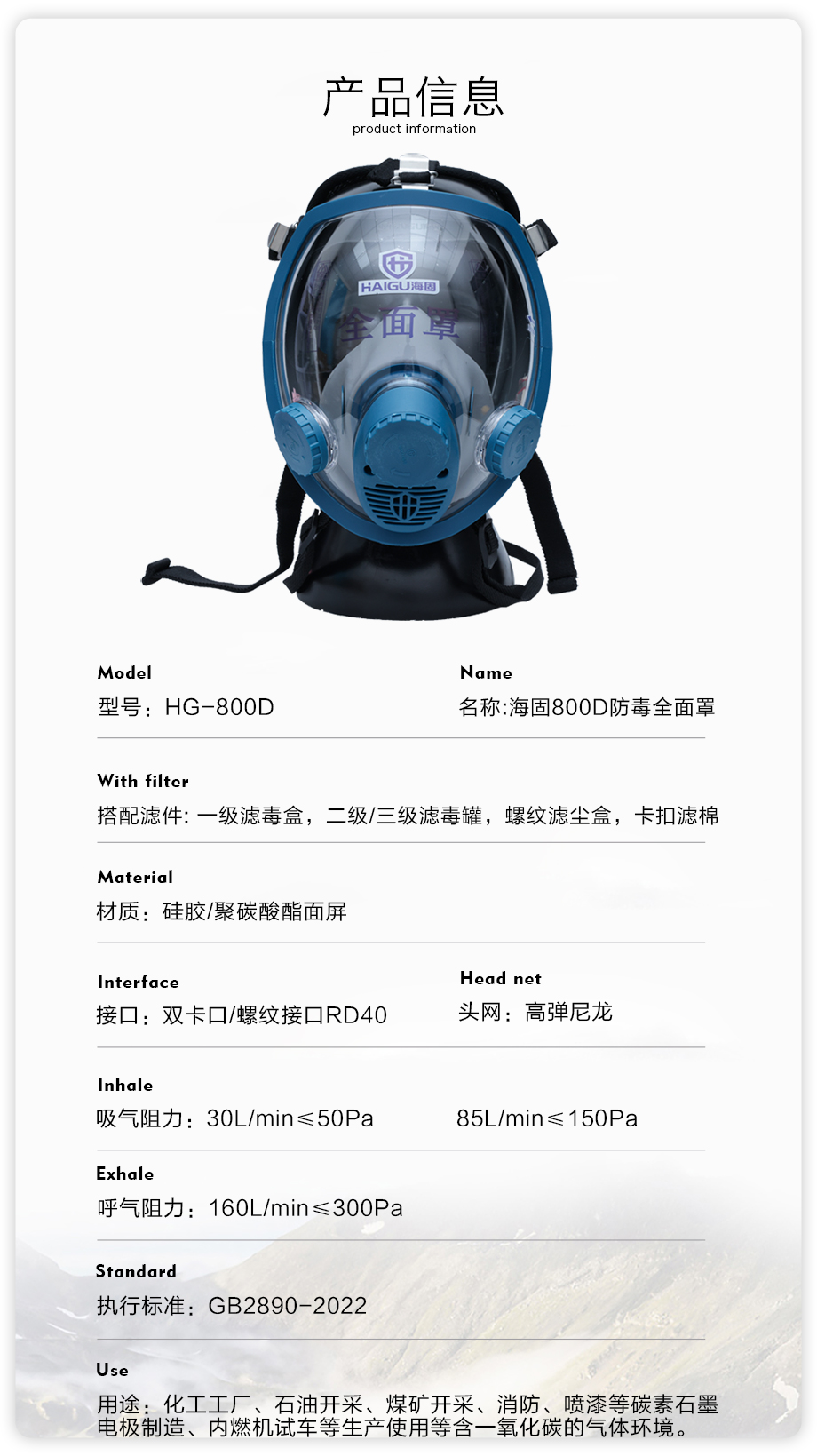 海固800D全面罩+HG-ABS/P-CO-3濾毒罐 一氧化碳防護(hù)套裝