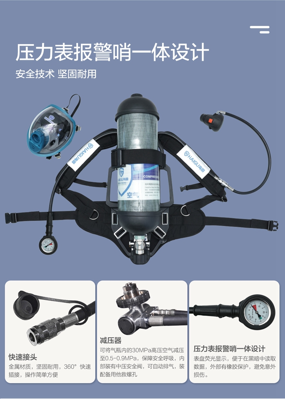 海固HG-RHZKF6.8/30自給開路式空氣呼吸器 壓力表報(bào)警哨一體化