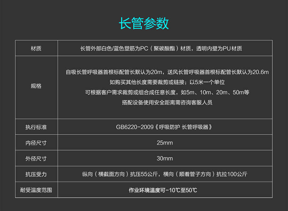 長管呼吸器藍(lán)白色塑筋增強(qiáng)管 長管呼吸器專用 5米10米20米