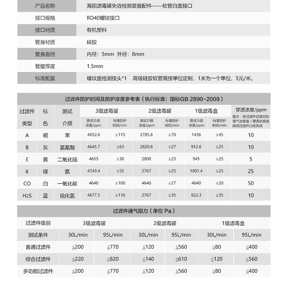 濾毒罐失效檢測(cè)裝置配件-軟管白蓋接口