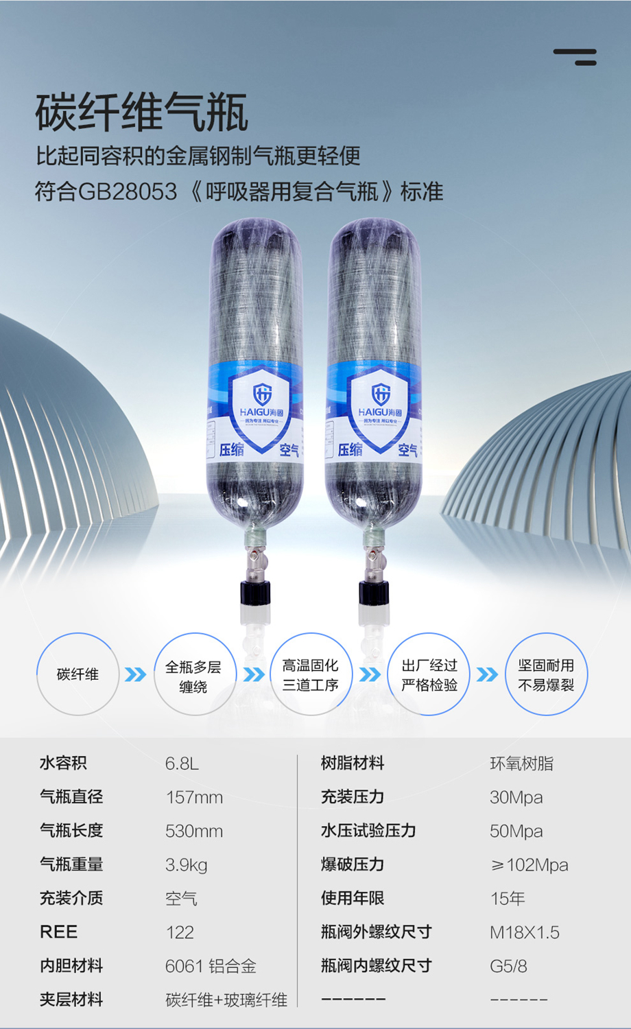 海固RHZKF6.8/30(智能通訊款) 正壓式空氣呼吸器(裝配SD-1智能通訊款面罩)